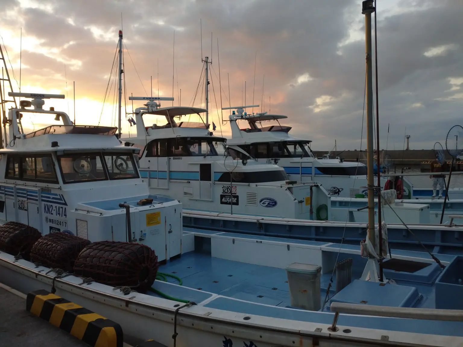 天候も午後から荒れる予報なんですが、朝は風もなくて気持ちの良い天気でしたーちなみにアオリイカ船は画像の真ん中の船でした。